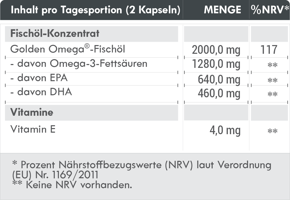 | Golden Omega® Fischöl | 2000 mg | – |